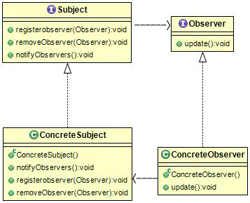 즉, 하나의 주제(Subject)객체에 여러 옵저버(Observer) 객체들이 구독을 신청(add)하면, 주제 객체는 변경사항이 생길때마다(update) 옵저버들에게 변경데이터를 전달한다. 그리고 옵저버들은 해당 데이터가 더 이상 필요하지 않다면 구독 취소(remove)할 수도 있다.
