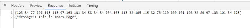 package main import ( "encoding/json" "fmt" "net/http" ) type indexResponse struct { Message string } func main() { http.HandleFunc("/index", indexHandler) http.ListenAndServe(fmt.Sprintf(":%v", 8080),nil) } func indexHandler(resp http.ResponseWriter, req *http.Request) { response := indexResponse{Message: "This is Index Page"} data, err := json.Marshal(response) if err != nil { panic("error!") } // 참고) fmt.Fprint 함수는 첫번째 객체에 두 번째 이후의 데이터를 담는다고 보면됨. fmt.Fprint(resp, data, "\n") fmt.Fprint(resp, string(data)) }실행결과)