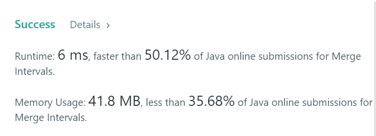 - merged라는 LinkedList의 마지막 값의 column(end값)과 현재 interval의 row(start값)을 비교하여 결과 정리